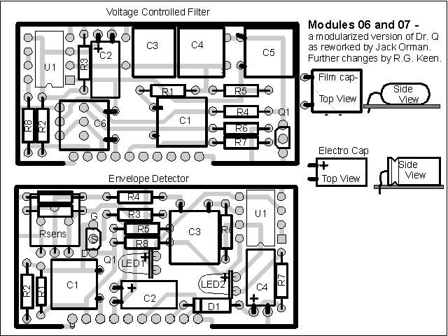 Here are the parts values, and what each part does for the Envelope Detector: (caps in uF unless noted; pots are audio taper unless noted)