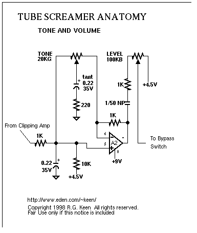 the TS series. Following the clipping stage there is a 1K resistor leading to a 0.22uF